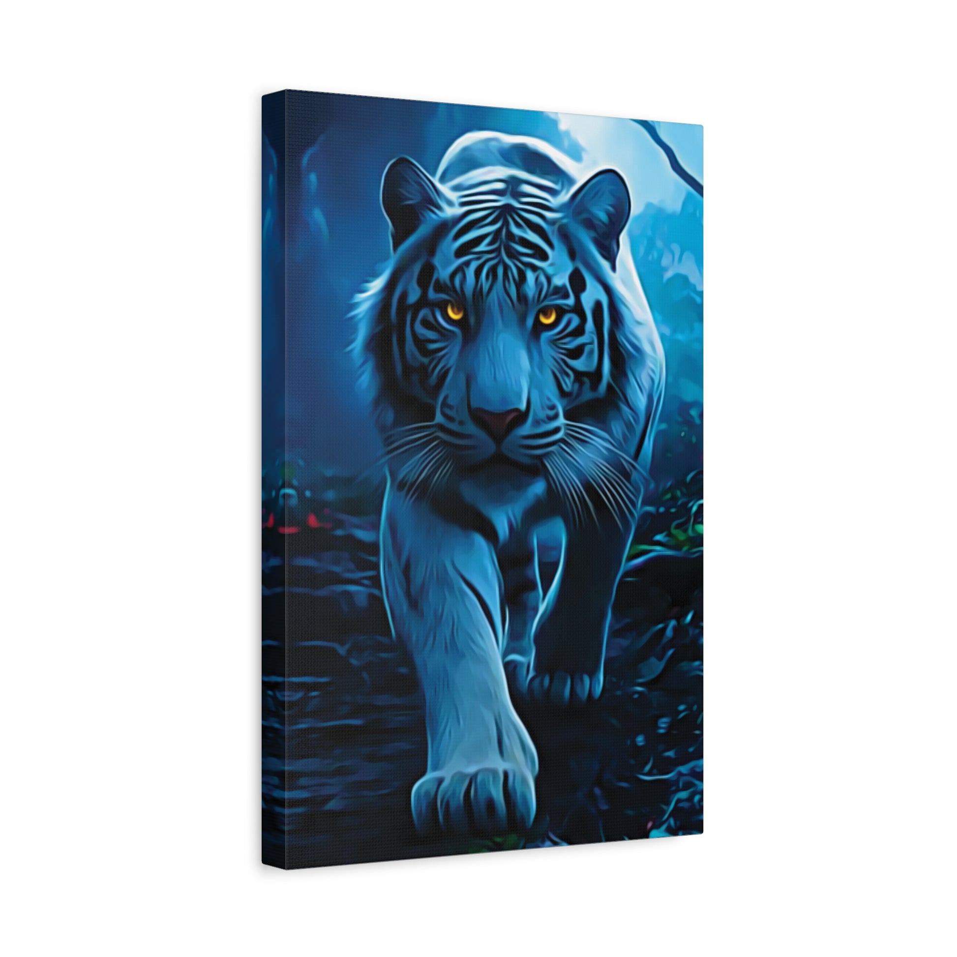 π Blue Ember: Strength in Stillness, Power in Motion - Majestic White Tiger Wall Art, Canvas Print, Home Decor, Animal Lover Gift, Wildlife Artwork, Unique Gift Idea, Eco-Friendly Decor