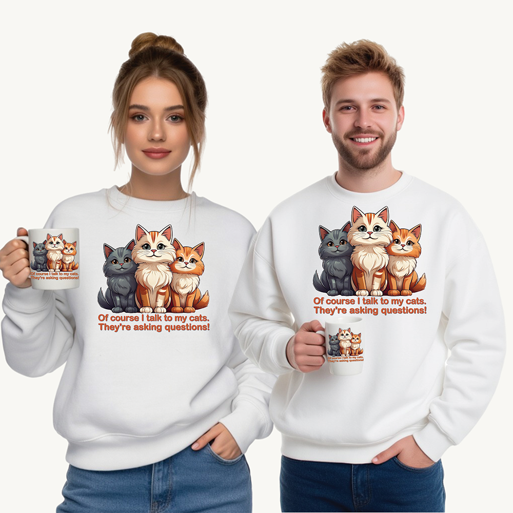 Cat Lovers Sweatshirt - Of course I talk to my cats. They're asking questions! - Unisex Heavy Blend Crewneck