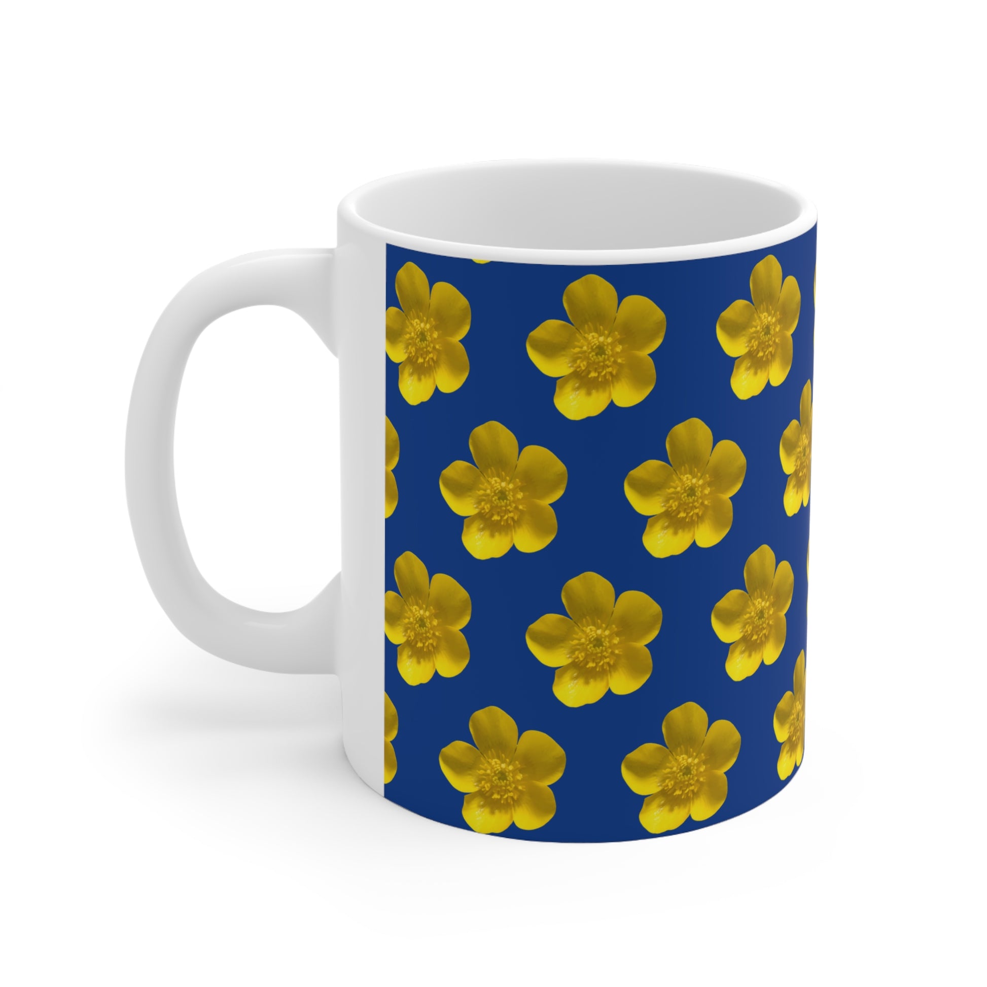 Brighten up your morning coffee routine with this Yellow Flower Pattern Design mug. The vibrant colors and glossy finish give a cheerful and lively vibe, making it perfect for starting your day with positivity. Ideal for flower lovers and nature enthusiasts, this mug is a great gift for birthdays, Mother's Day, or just to add some sunshine to someone's day.