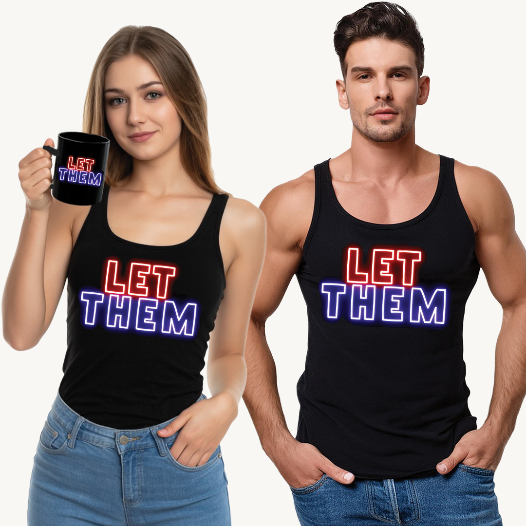This Tank Top features a bold 'LET THEM' empowerment design, making it a confident staple for those who lead with quiet strength and unapologetic style. It delivers a fearless attitude and is perfect for those who want to make a statement with their attire. Ideal for streetwear enthusiasts, this Tank Top is relevant for empowerment-focused holidays and celebrations.