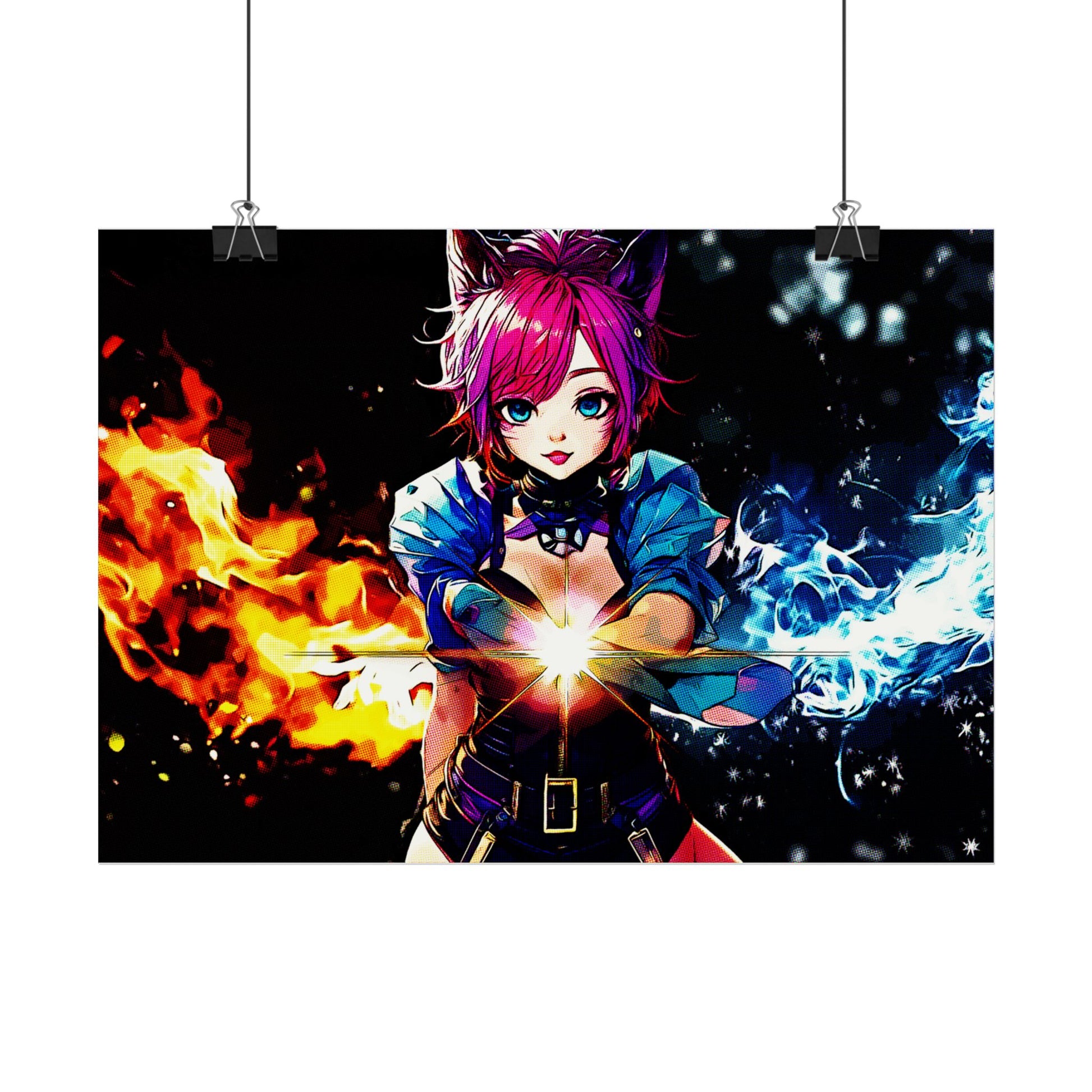 Fantasy Art Poster - Elemental Warrior with Fiery and Icy Powers