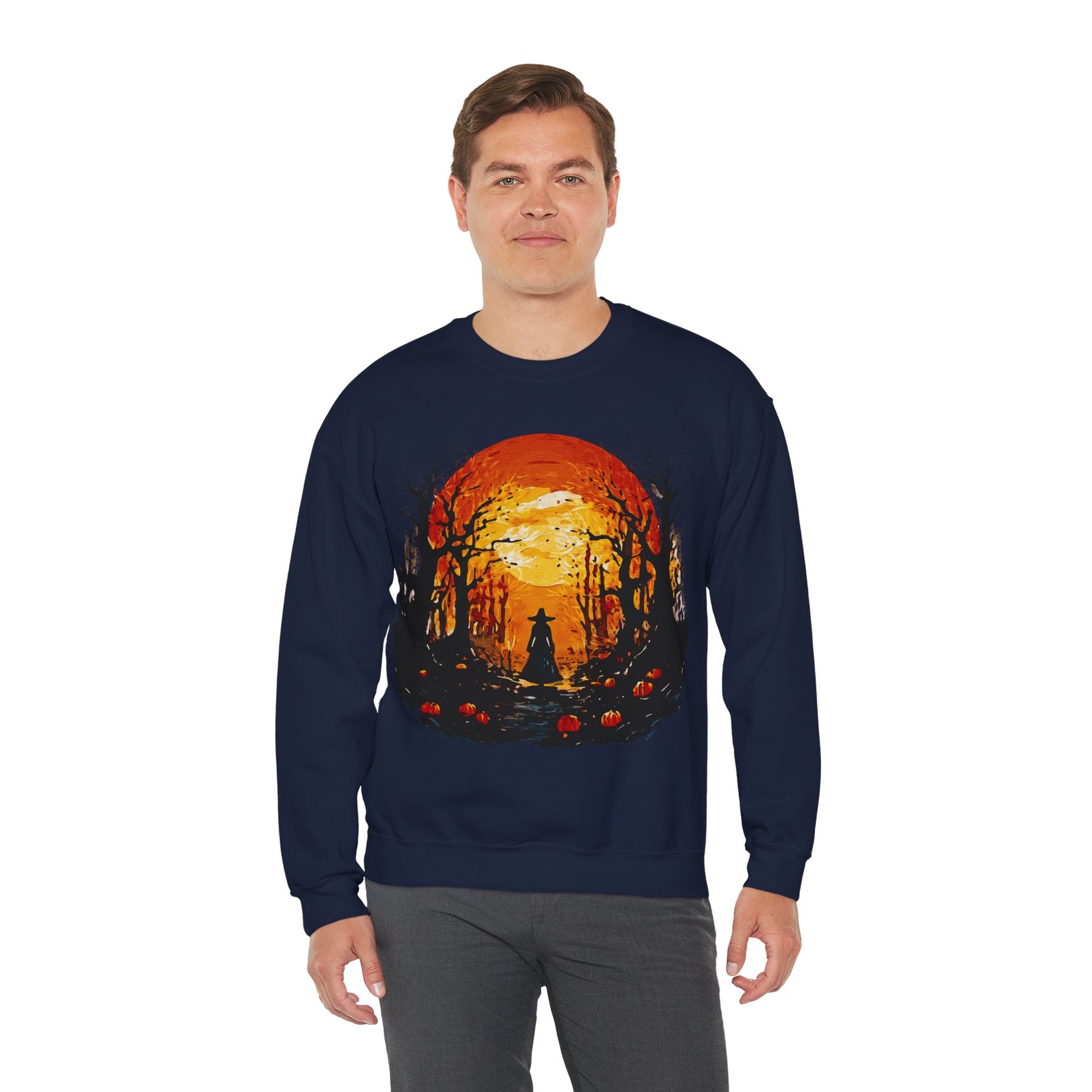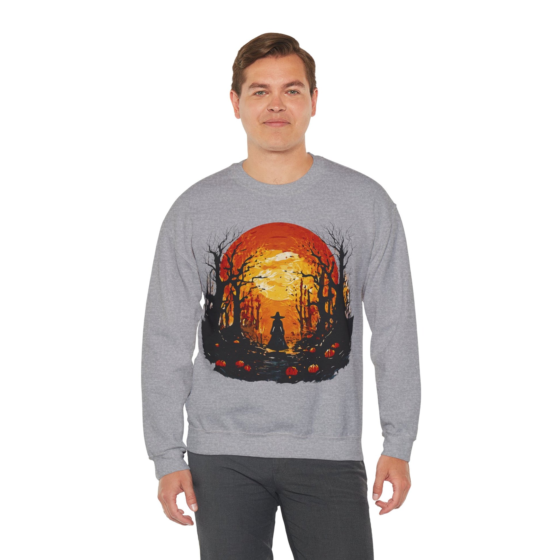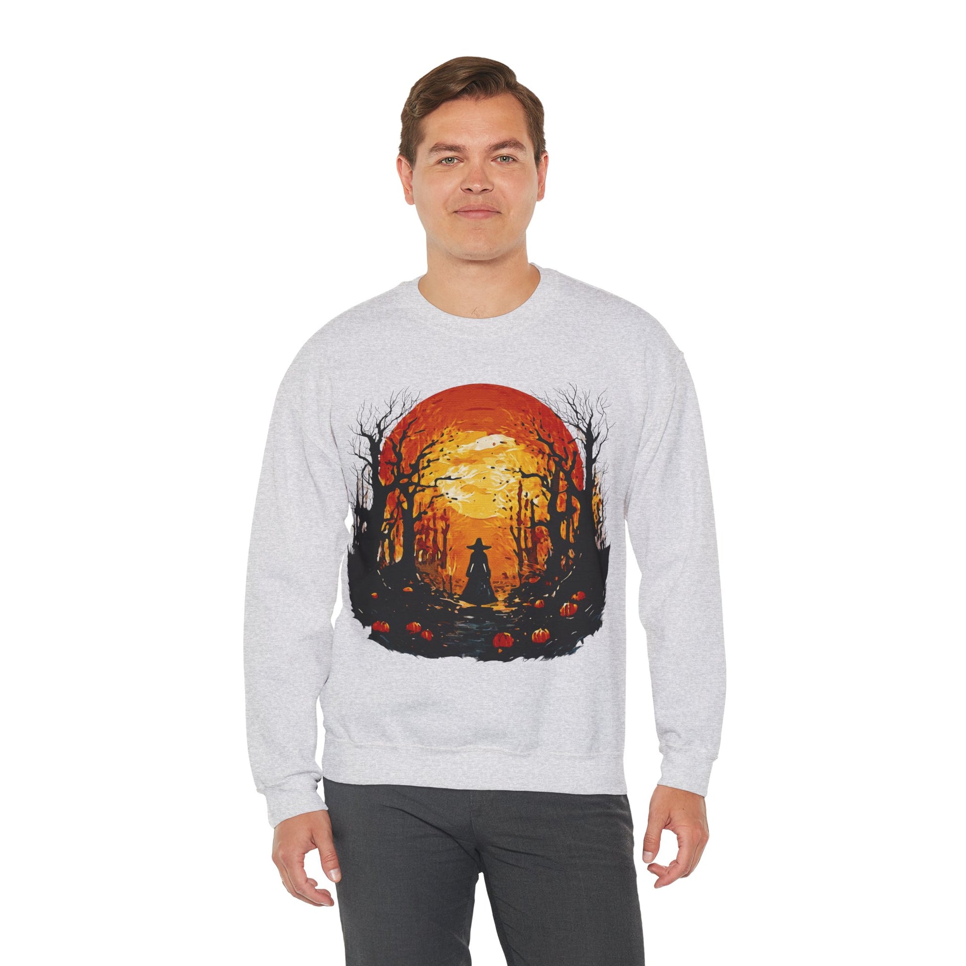#HalloweenFashion #SpookySeason #FallAesthetic #PumpkinVibes #MoonlitMagicTransform your wardrobe with this cozy Unisex Heavy Blend™ Crewneck Sweatshirt, perfect for chilly evenings and casual outings. The warm, inviting design evokes a feeling of autumnal solitude, making it an ideal choice for those who cherish the beauty of changing seasons. This sweatshirt fits seamlessly into the lives of individuals looking for comfort and style, whether lounging at home, enjoying a bonfire with friends, or going for a walk in the crisp air. It's a wonderful gift for anyone who loves fall, Halloween, or simply seeks an elevated everyday look. Perfect for cozy gatherings, festive celebrations, and casual outings, this sweatshirt will quickly become a wardrobe staple for the cool weather ahead.