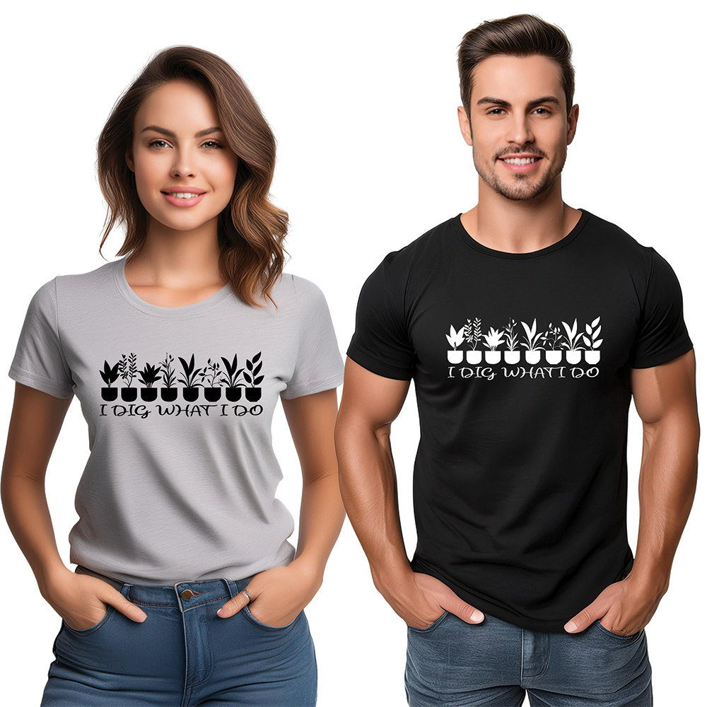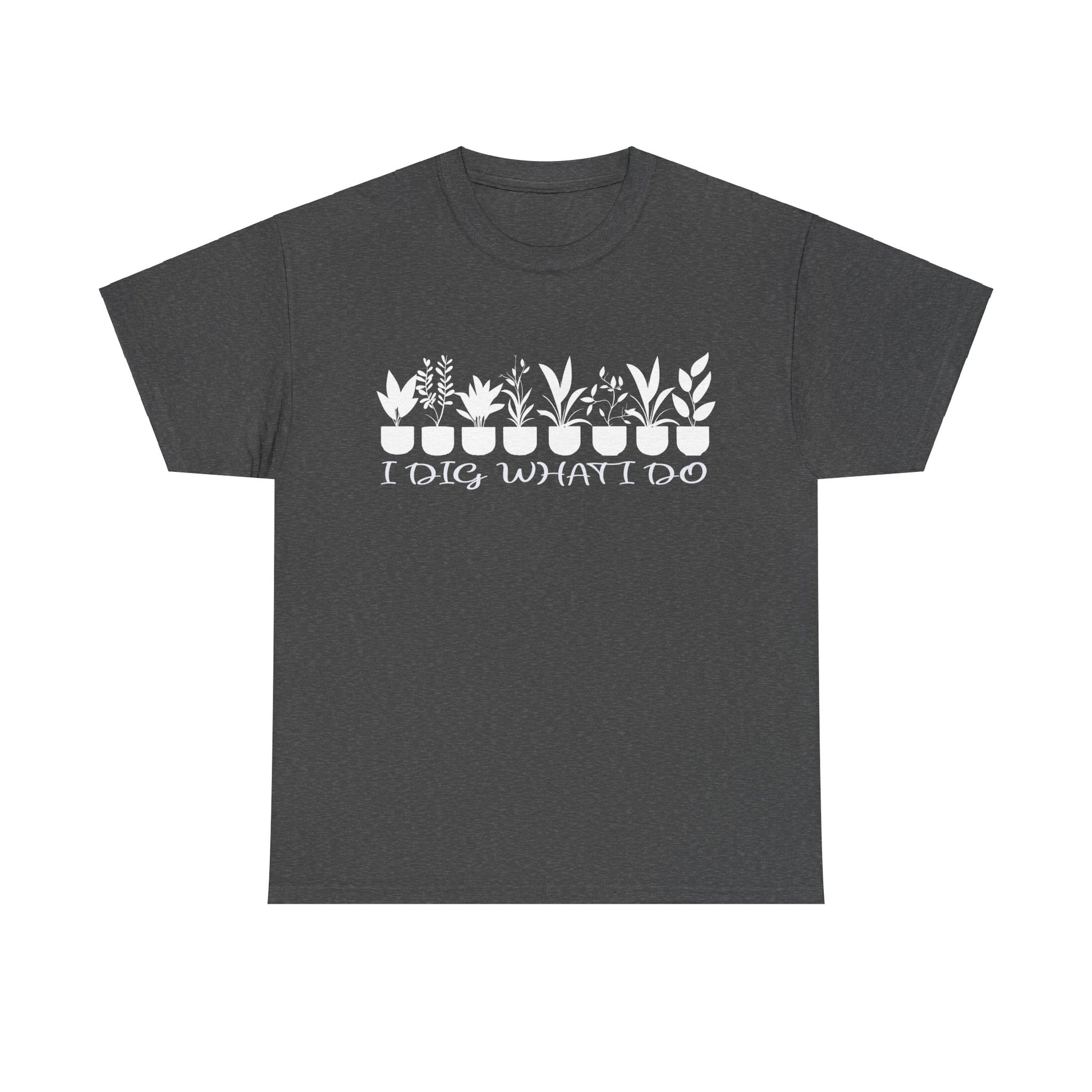 Embrace the joy of gardening with this 'I Dig What I Do' T-Shirt. The design exudes a laid-back, earthy vibe perfect for plant enthusiasts and nature lovers. Whether worn while gardening, running errands, or lounging at home, this tee can seamlessly fit into any casual day-to-day outfit. Ideal for Earth Day, gardening events, or simply as a fun statement piece.