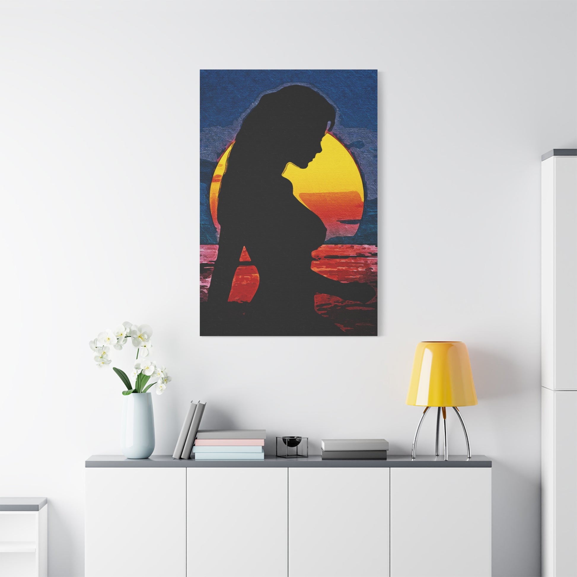 Radiant Horizons: Empowering Silhouette by Sunset – Embrace Inner Strength and Inspiring Beauty - Sunset Silhouette Canvas Wall Art, Inspirational Home Décor, Modern Art Print, Gift for Her, Boho Vibes, Perfect for Beach Lovers