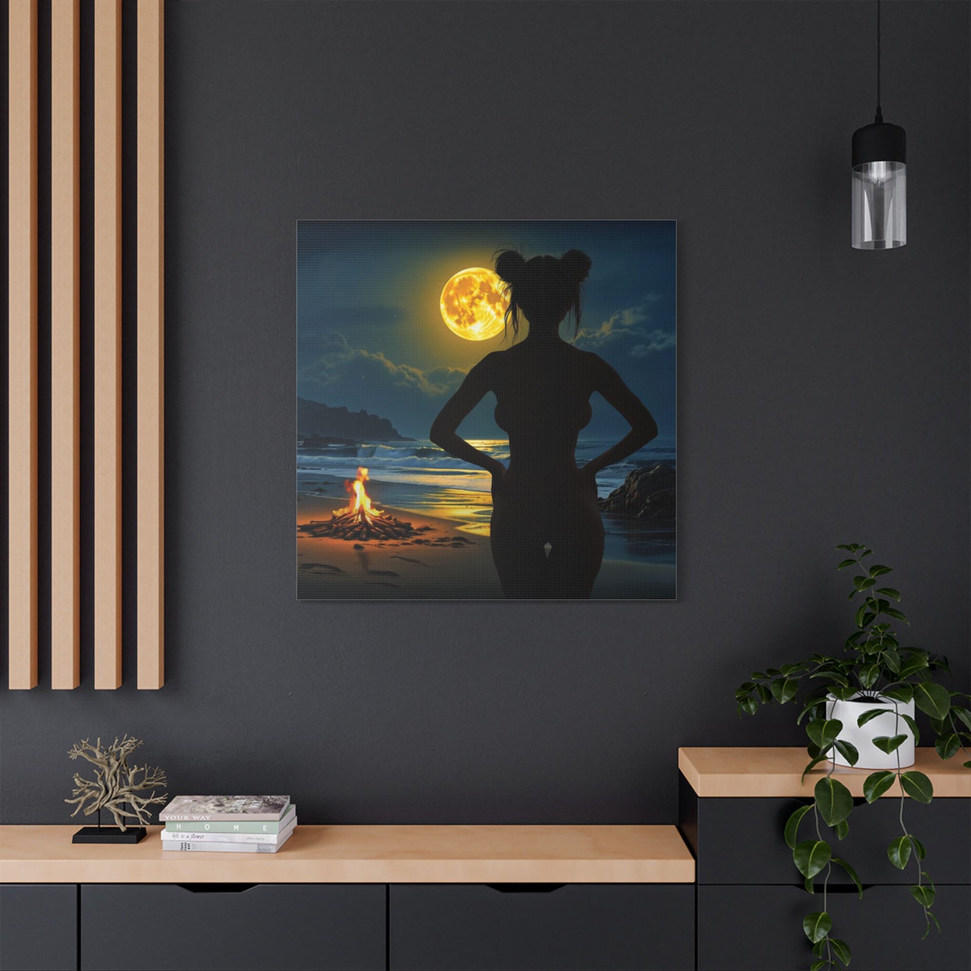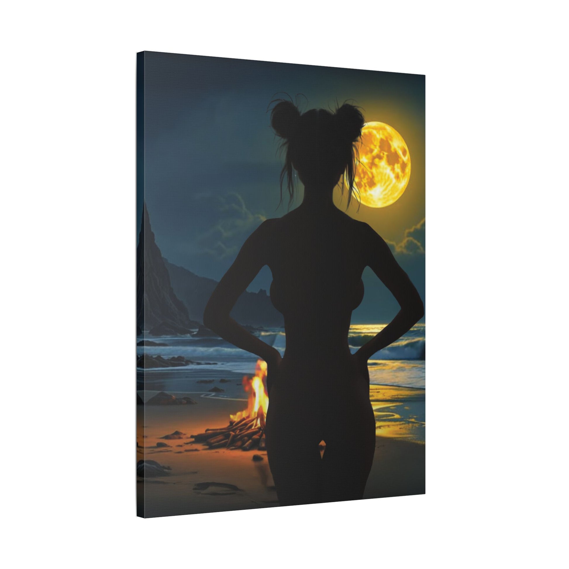 Bathed in moonlight and firelight, Roxie’s Midnight Swim evokes mystery, sensuality, and freedom. This bold, atmospheric canvas art enhances any space with coastal allure. #BeachVibesArt #MoonlightCanvas #SensualWallDecor #PosterDesign #MidnightMagicArt - Transform your space with this stunning Satin Canvas that captures the essence of serene evenings and natural beauty. Featuring vibrant colors that pop, this artwork brings warmth and charisma to any room. Its modern, satin finish adds a touch of elegance and sophistication. Perfect for art lovers and home decor enthusiasts, this canvas fits seamlessly in living rooms, bedrooms, or offices. Celebrate special occasions like housewarmings, anniversaries, or birthdays by giving the gift of art. With various sizes available, you can easily find the perfect fit for your space. Elevate your environment and immerse yourself in the tranquility it offers.