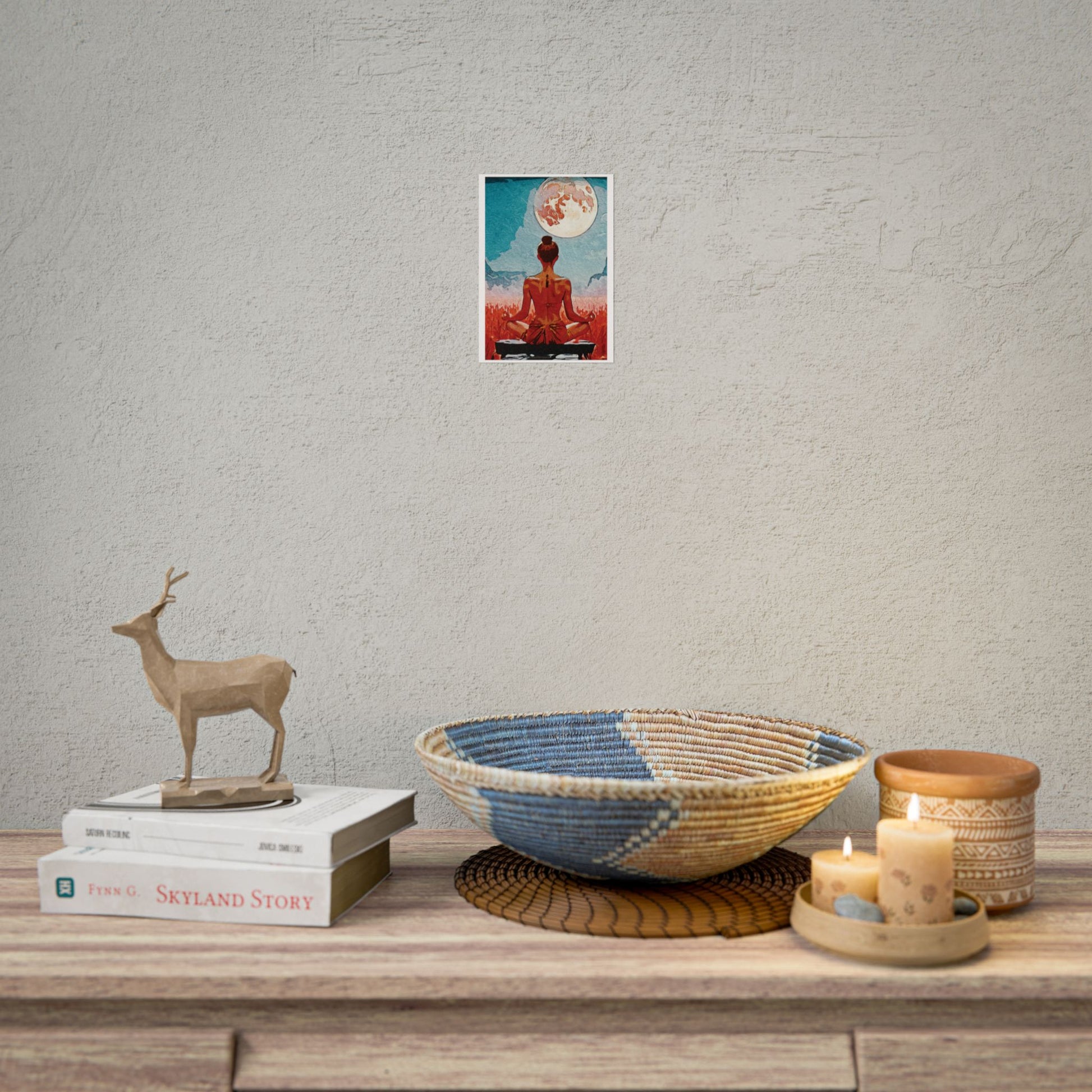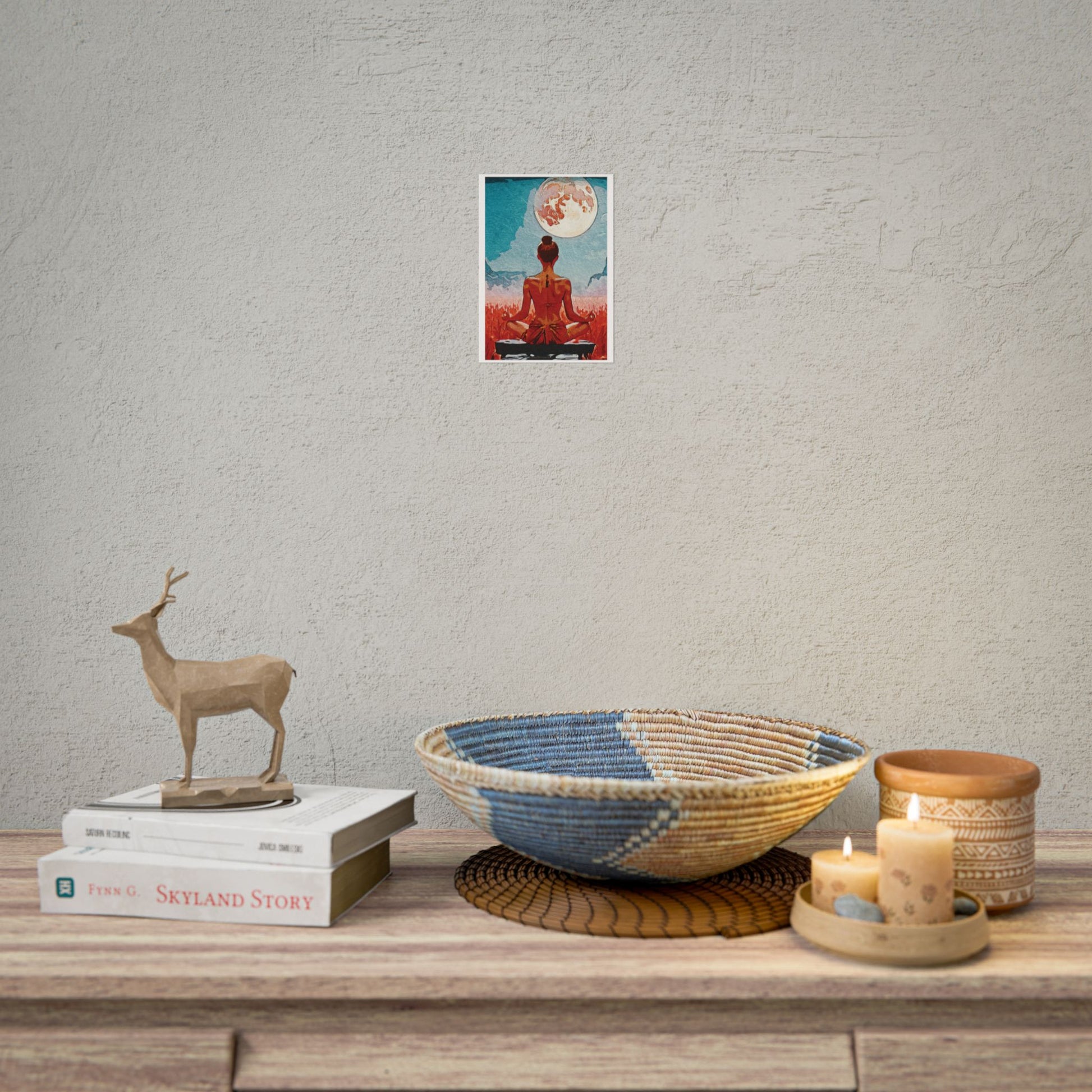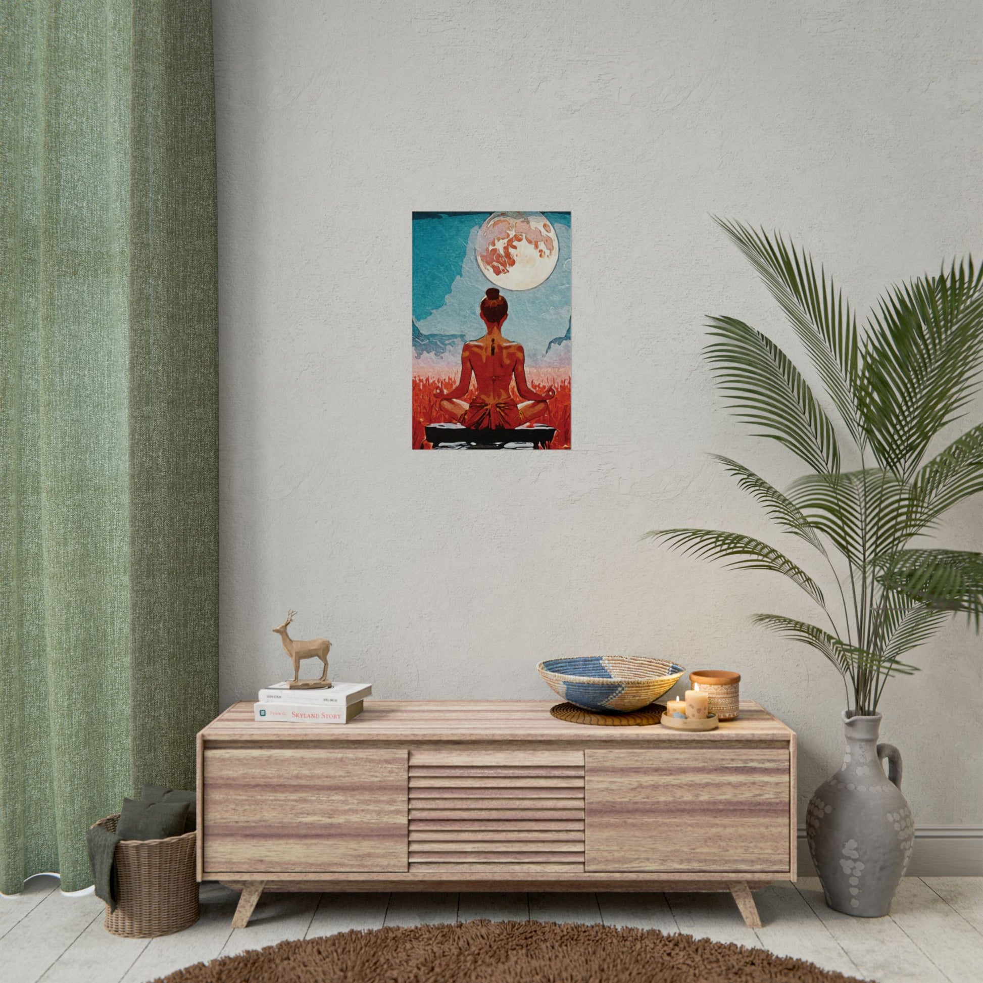 Serenity Under the Full Moon - Meditation Art Print, Zen Rolled Poster, Relaxation Decor, Spiritual Wall Art, Yoga Gift, Mindfulness Artwork