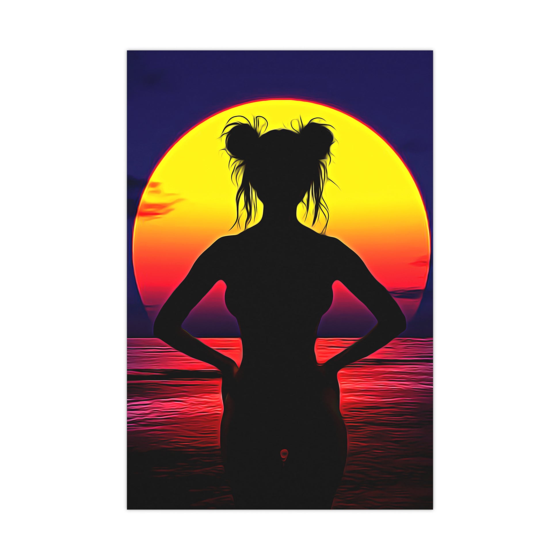 Solar Silhouette: Embrace Inner Strength in the Golden Sunset Glow - Sunset Silhouette Matte Poster, Art Print for Home Decor, Aesthetic Wall Art, Beach Vibe Decor, Gift for Art Lovers
