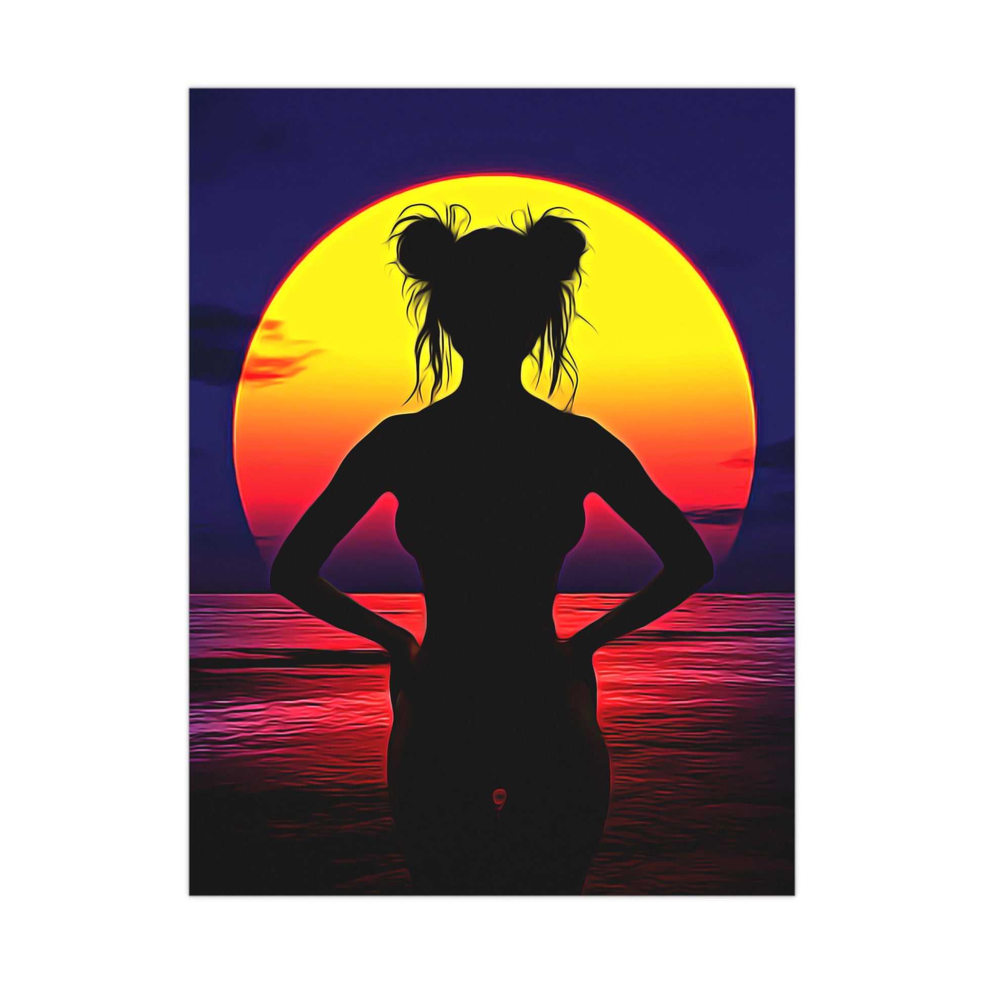 Solar Silhouette: Embrace Inner Strength in the Golden Sunset Glow - Sunset Silhouette Matte Poster, Art Print for Home Decor, Aesthetic Wall Art, Beach Vibe Decor, Gift for Art Lovers