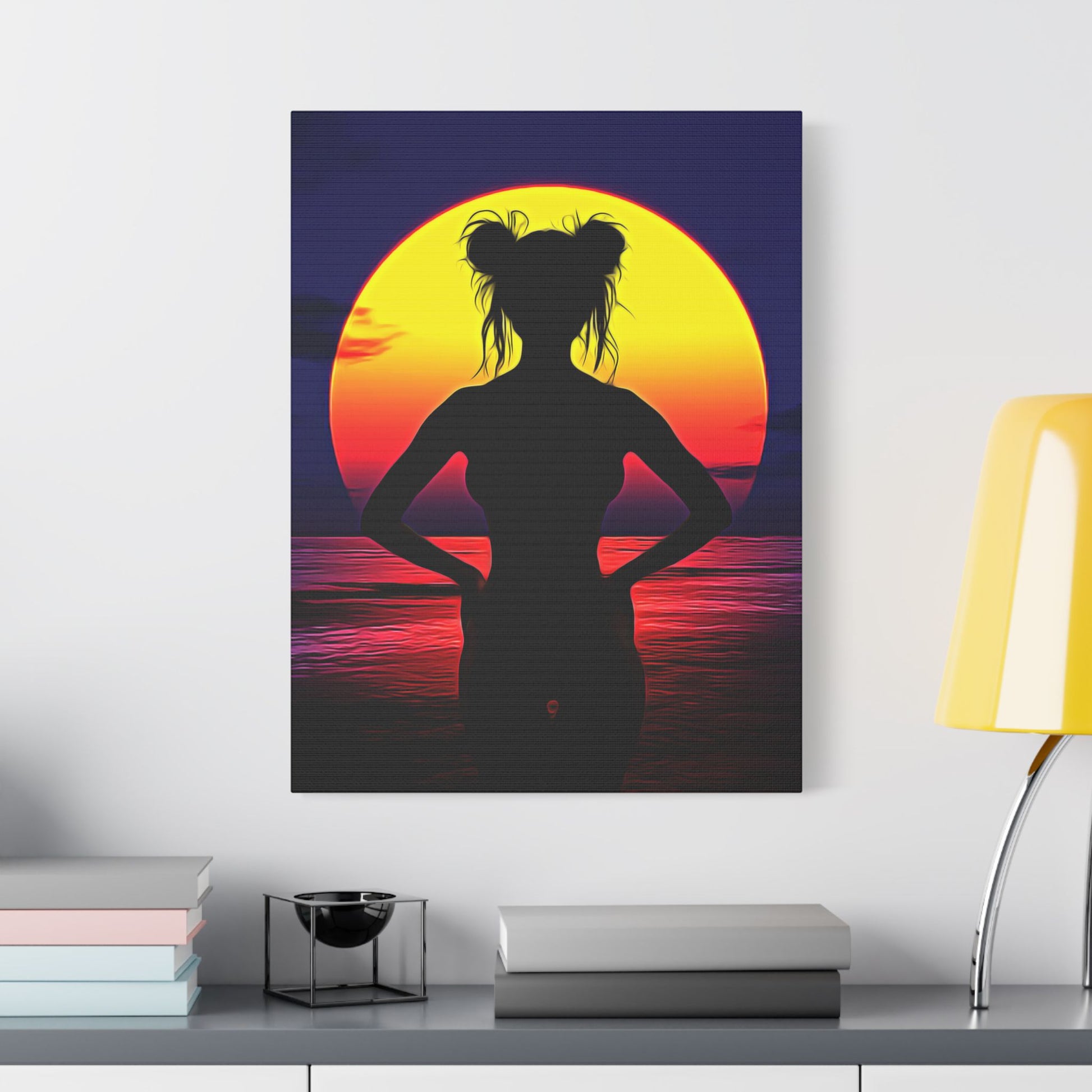 Elevate any room with this striking sunset silhouette print. Rendered on premium canvas, it infuses spaces with warmth, empowerment, tranquil beauty. Perfect for living rooms, studios, or offices seeking a touch of serene wanderlust. #sunset #silhouette #wallart #canvasprint #homedecor #beachvibes