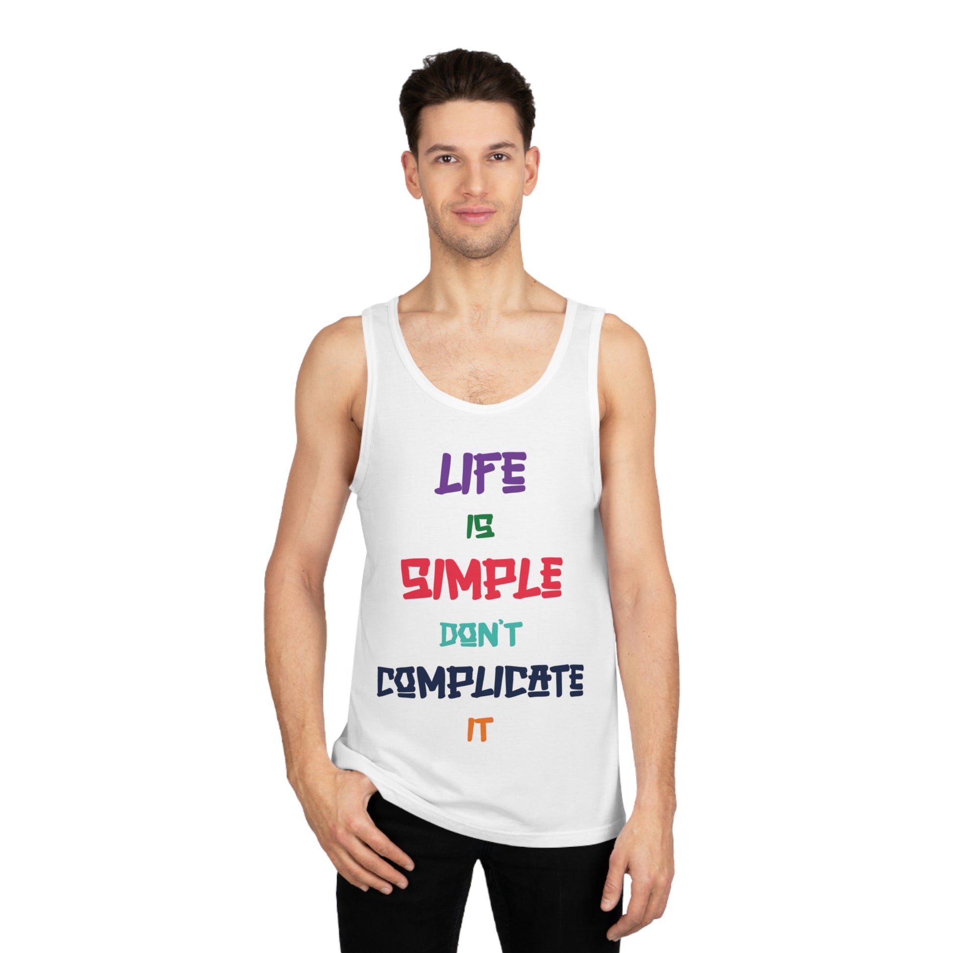 Embrace simplicity and positivity with this stylish unisex tank top. Featuring a vibrant design that reminds you to keep life uncomplicated, this tank is perfect for casual outings, gym sessions, or lounging around at home. Its light weight and semi-fitted cut ensure ultimate comfort, making it an essential addition to any wardrobe. Ideal for anyone who values a carefree lifestyle—this tank top is a fantastic gift for friends and family during celebrations such as birthdays, summer vacations, or just to brighten someone’s day. Wear it at beach parties, yoga classes, or casual get-togethers; it’s versatile enough to suit any occasion!