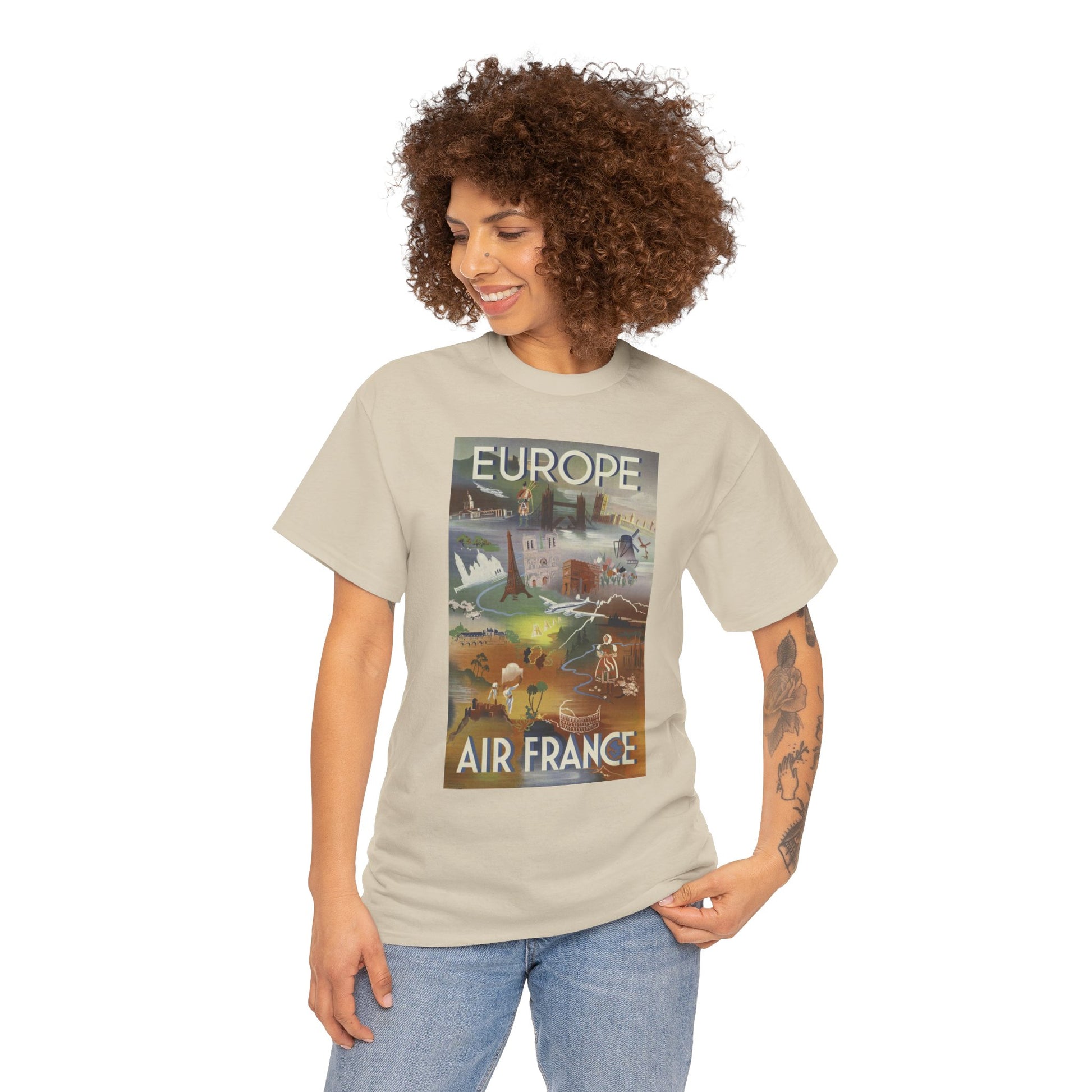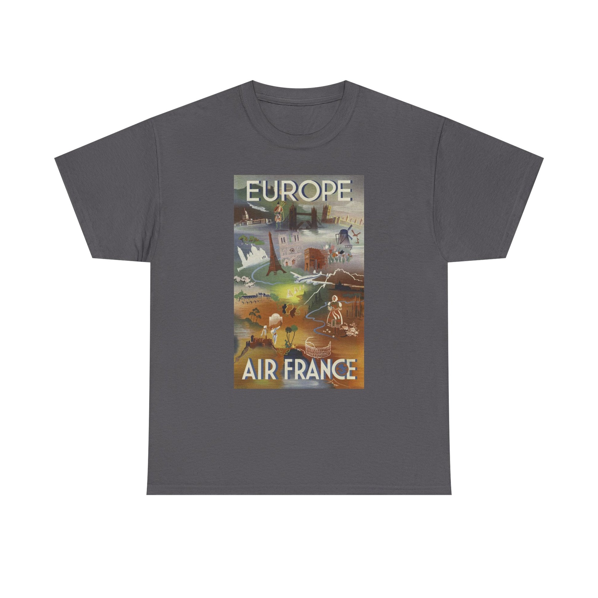 Vintage Air France 1948: Retro Travel Poster Celebrating Europe’s Beauty, Adventure, and Timeless Wanderlust - Unisex Heavy Cotton Tee