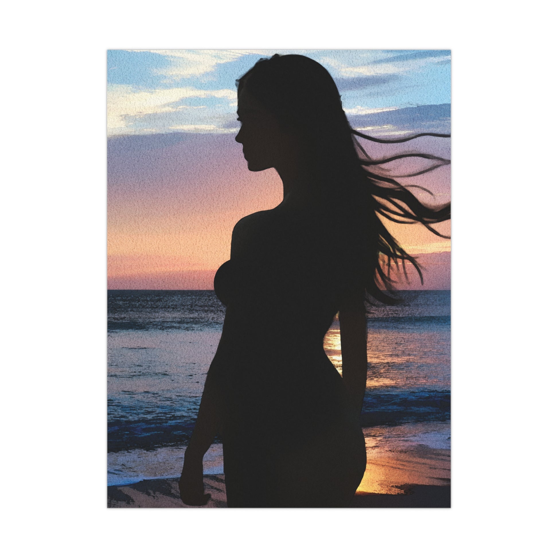 Whispers of the Horizon – Serene Silhouette at Sunset Capturing Peace, Beauty, and Timeless Grace - Silhouette Beach Matte Poster, Wall Art, Home Decor, Aesthetic Print, Artistic Decoration
