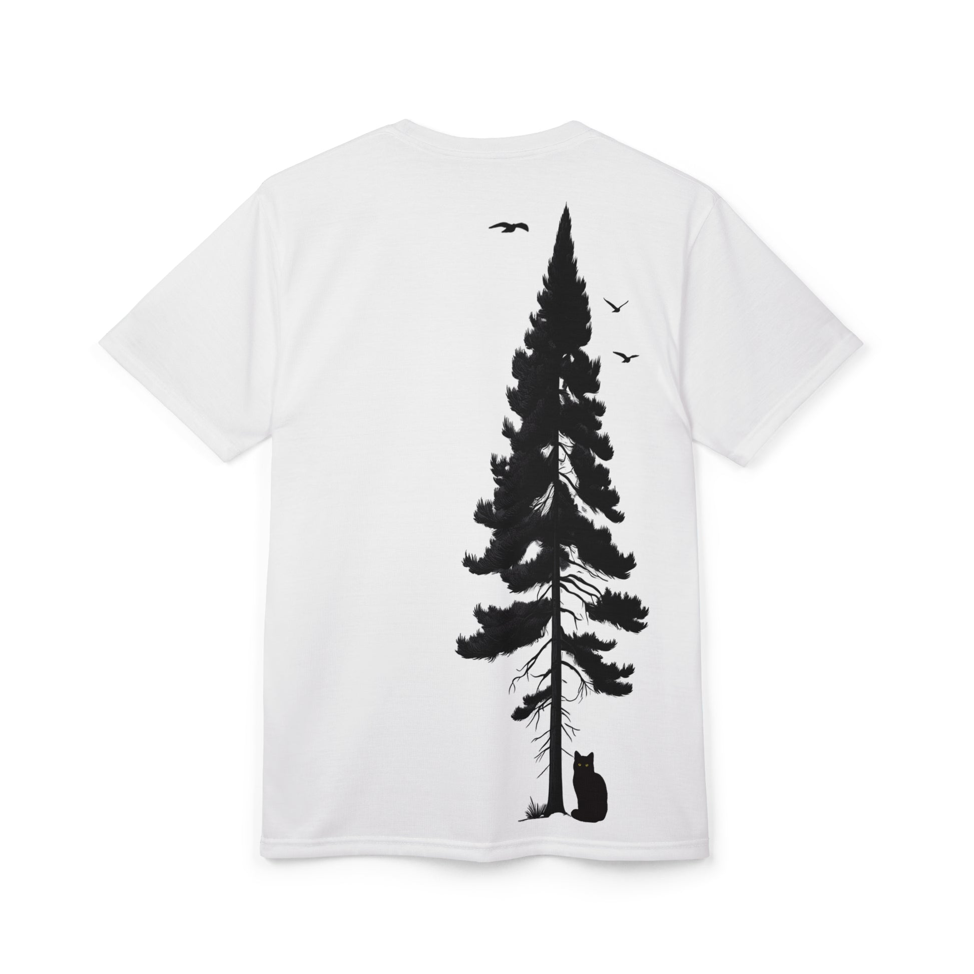 Silent Watcher, Wild Heart Unisex Cut & Sew Tee. Find strength in stillness and solitude, like the mysterious feline guardian. Against the vast white canvas of possibility, even the smallest presence carries profound significance. Relevant for nature enthusiasts, cat lovers, and those seeking quiet reflection. Perfect for Earth Day, World Wildlife Day, or any day to celebrate the beauty of the natural world.
